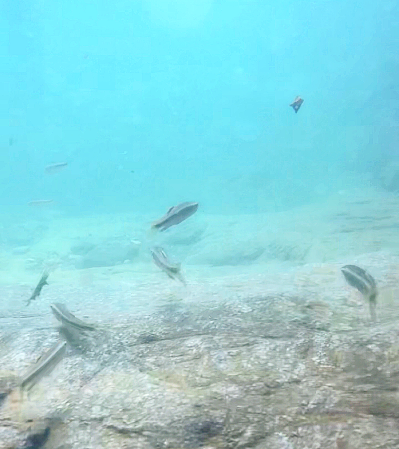 저희는 수영을 워낙 좋아해서 챙겼던 스노클링 마스크! 였는데요, 세상에나, 계곡에 이렇게 물고기가 많은 것은 처음 봤습니다. 저희끼리 "대박! 물고기 대박 많아!" 하면서 계속 수영할 때 수경이나 스노클링 마스크를 가져오지 않은 주변 분들이 아쉬워하는 모습을 많이 볼 수 있었습니다. 다들 집에 하나쯤 있을 물안경 꼭 챙기시는 것을 추천드립니다.