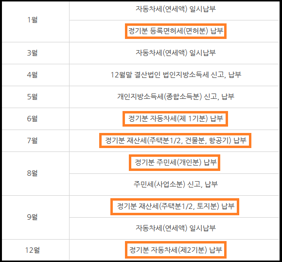 정기분 지방세 일정